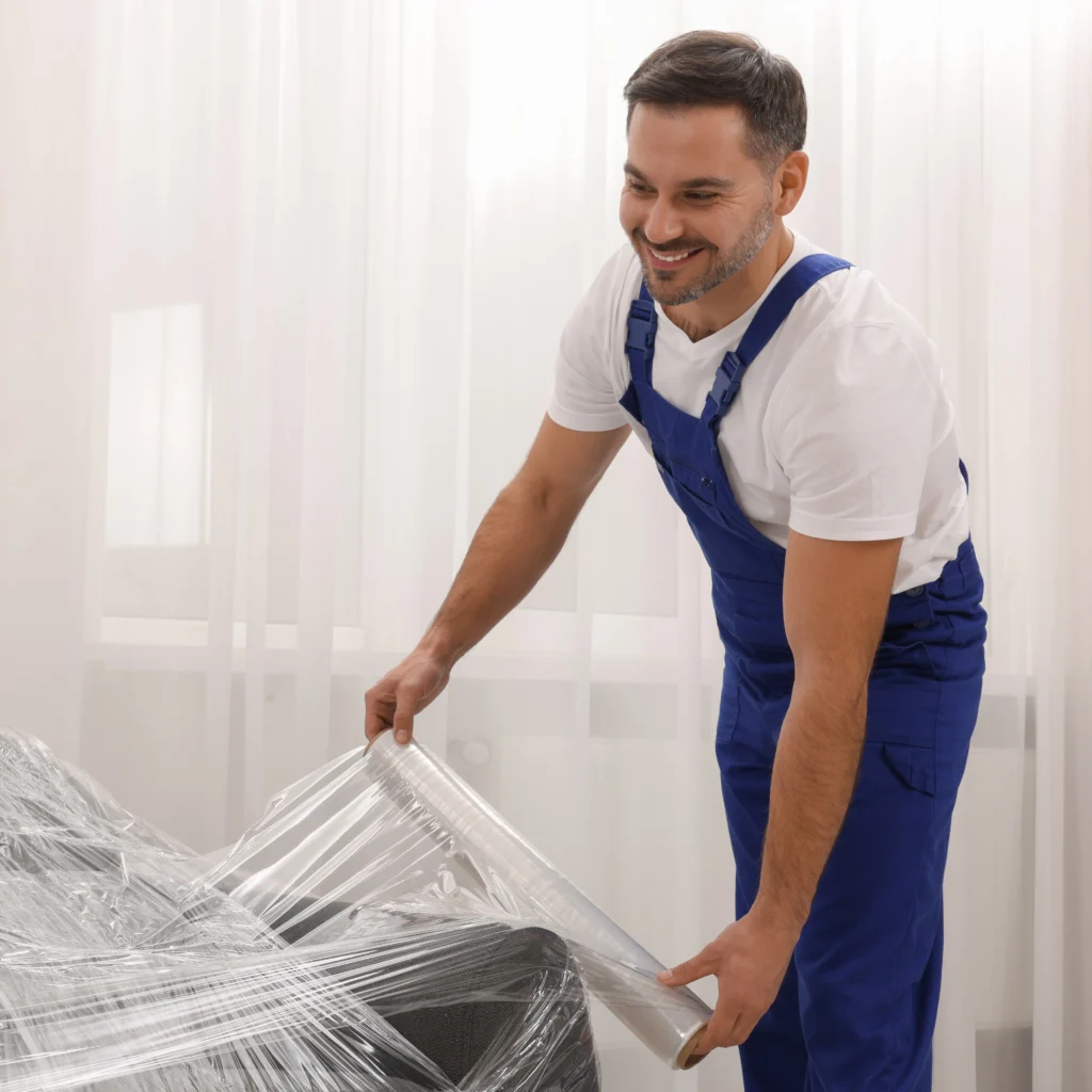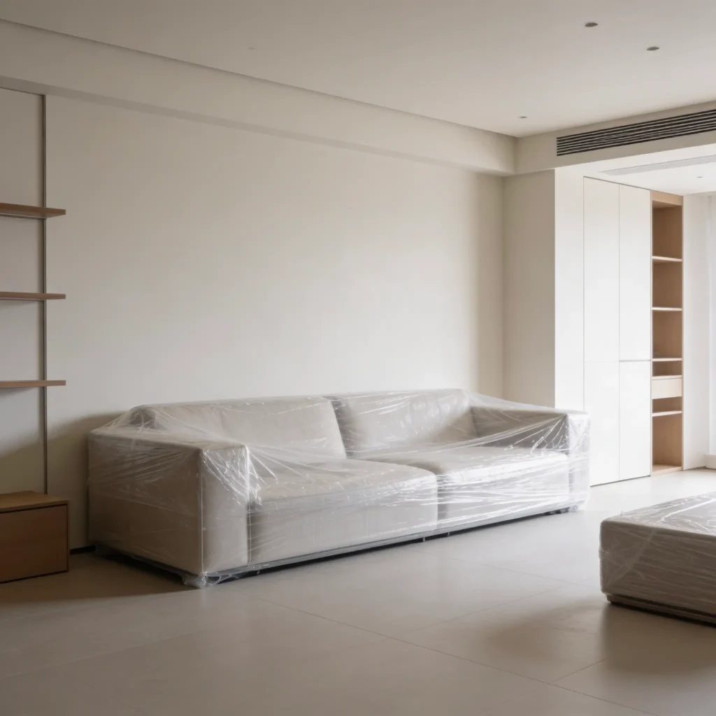 Industrial-grade package shrink wrap provides secure coverage for high-value furniture, machinery, and belongings during relocation.